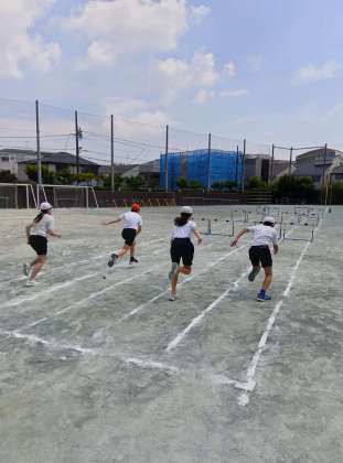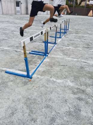 ハードルの練習も複数のハードルを立てて本格的になってきました。6年生トビマストビマス!