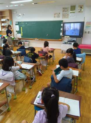 のような、繰り上がる計算の仕方を学習していました。1年生から使っている「さくらんぼ」の考え方で、「26」を20と6に分けて考えていました。考え方をしっかり伝える場面があり、2年生も夏休み明けとてもしっかりしてきたなあと感じました。