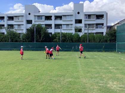 第二校庭では、ボールゲームクラブ2が青々と茂った芝生の上でサッカーを楽しんでいました。