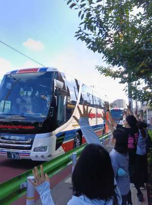 5年生はたくさんの保護者、教職員に見送られ無事川場移動教室に出発しました。朝早くからの見送りありがとうございました。