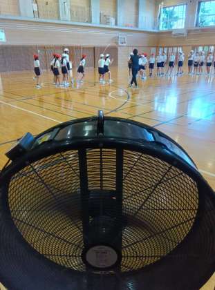 今日は朝から熱中症指数が高く、1時間目の体育から校庭の使用を控えています。6年生は体育館で長縄。エアコンに加えて大型ファンもフル稼働です。