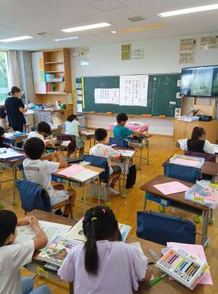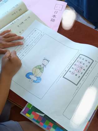 2年生の日本語、難しい漢詩に取り組むんですね。でも目的はそれを読み解くことではなく「音の響きやリズムを感じながら読む」というところなので、意味などにも触れますが「感じる」ことが大切です。