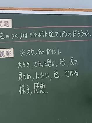 ・・・実はこれは、観察のポイントをまとめた頭文字で、観察の時に大切なポイントを表しています。低学年の生活科で習ったようです。