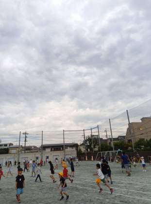 まだ曇っていてそこまで気温は上がっていませんが、蒸し暑いです。注意喚起をしてからの中休みの外遊びでした。