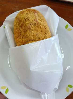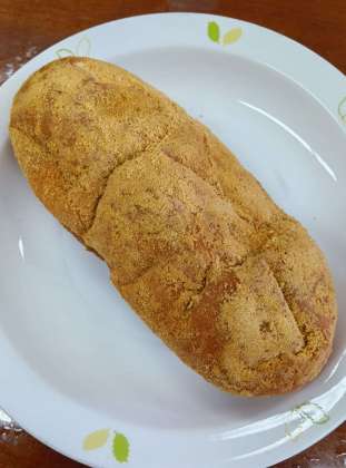 今日は、初めのあげパンと同じくこっぺぱんのあげパンでした。「おくるみ感」が最大限出るように写真を撮ってみましたが・・・本当にかわいらしい赤子に見えてきました。