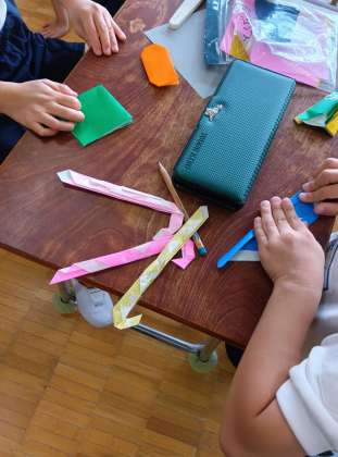 「おしゃれかざりがかり」さんと「キラキラがかり」さんでしょうか。すてきな飾りを作っていました。学級が明るくなりますね。他にも、