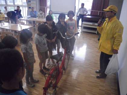 土曜日は用賀町会主催の「親子三代自転車教室」でした。あいにくの雨模様なので校庭での自転車の乗り方等の内容は出来ません。多目的室でクイズ問題やビデオを見ての勉強、また、自転車の整備についての勉強を行いました。子どもたちも、保護者も、町会の方々、年配の方々も来てくれました。初めての取り組みでしたが町会はもちろん、PTA保護者の協力があり,成功裡に終わることができました。ご協力有難うございました。(校長 箭内)