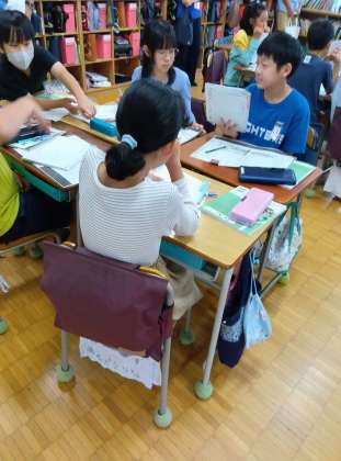 教材に出てくる登場人物や題材を通して、道徳的価値について考えてました。4・5・6年では、どちらの側に立つのかを考え、お互いの意見を交わす場面が多く見らえました。異なる立場から意見を出し合うことで、多面的・多角的な価値に触れ、最後は自分を振り返り、これからの自分について考えを深めていきます。