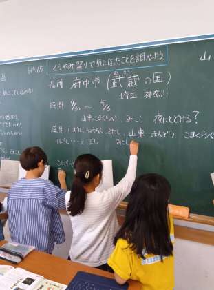 東京都についての学習をしている4年生、これまで各地に伝わる伝統工芸品などについての学習もしてきました。東京都で行われている「まつり」について調べます。意外と近くで大きなお祭りが行われているのが分かったようです。地域の人々が長く伝統を守ってきた祭りの存在にも気が付くことでしょう。