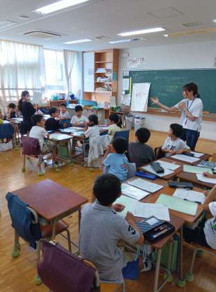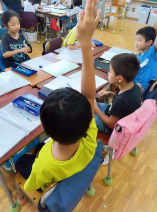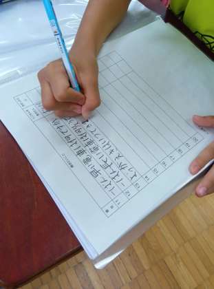 今回は、用賀の町のお店を探検に出かけるということで、学年全体で訪れるお店ごとに集まって準備をしています。お店に行って「聞きたいこと」を考えているようです。