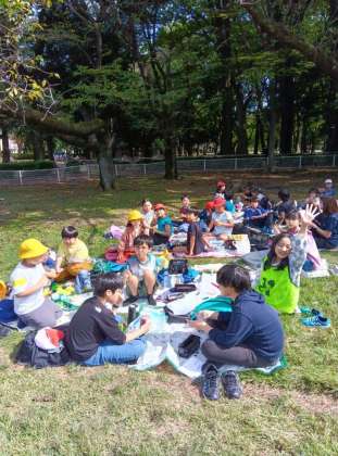 待ちに待ったお弁当タイムです。班ごとに集まって食べています。