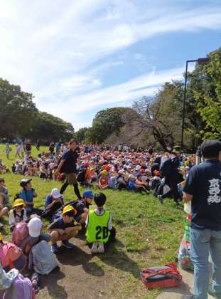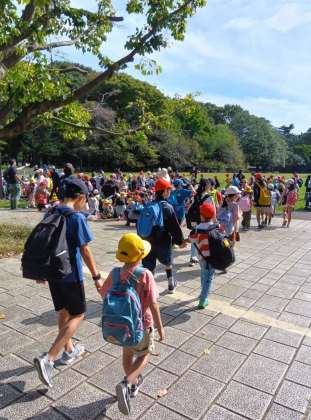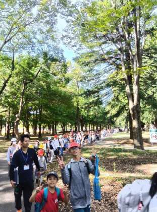 1年生は、ちょっと疲れたかもしれません。そんな1年生低学年ときちんと手をつないで高学年が寄り添ってくれています。本当に優しいです。