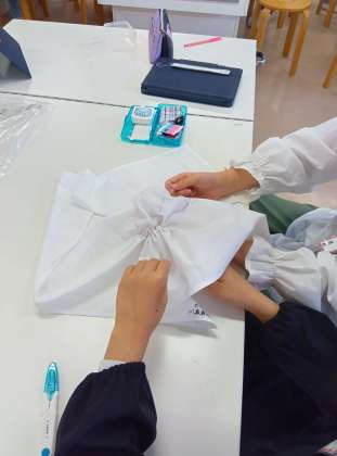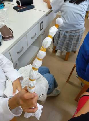 いいえ、団子ではありません。以前に少しお伝えした、6年生の家庭科の染め物の学習です。