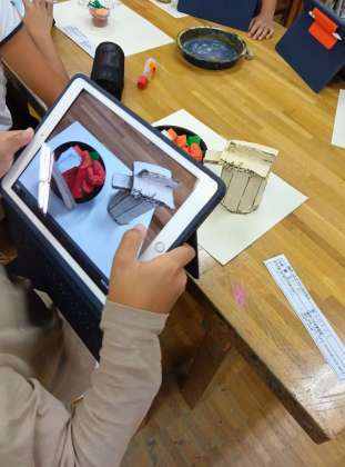限られた時間で仕上げをして、机の上をきれいにして並べます。写真を撮って、アプリにアップロードしました。今回は、普段は使っていないアプリを使うようです。