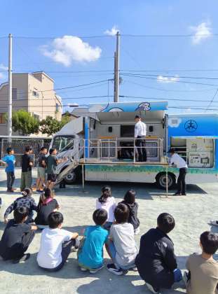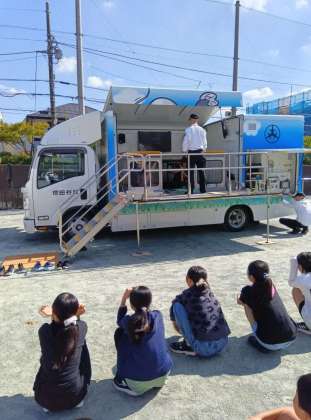6年生の起震車体験の様子です。全校での避難訓練に続いて、クラスごとに行いました。