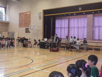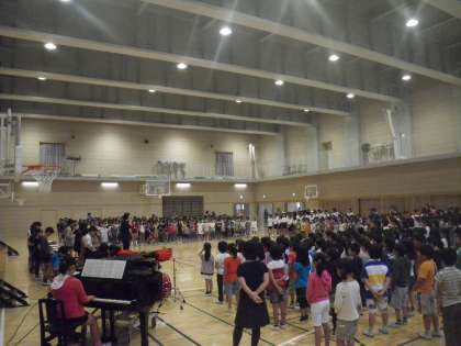今日の音楽朝会は「となりのトトロ」です。子どもたちが大好きな歌なのでしょう、普段の歌声の響きとはちょっと違います。楽しそうなのです。力強いのです。気持ちがこもっているのです。上手だなあと感心しました。