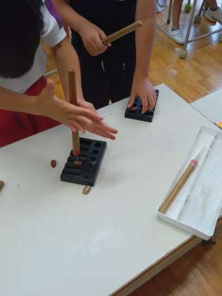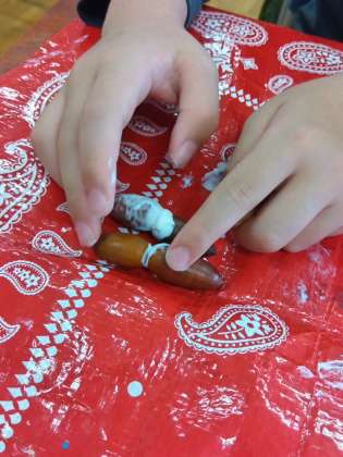 1年生は生活科のどんぐり拾いで集めてきたどんぐりを使っておもちゃを作っています。