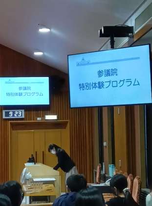 参議院特別体験プログラムが始まります。役割をもった子どもたちに事前の説明がされているところです。