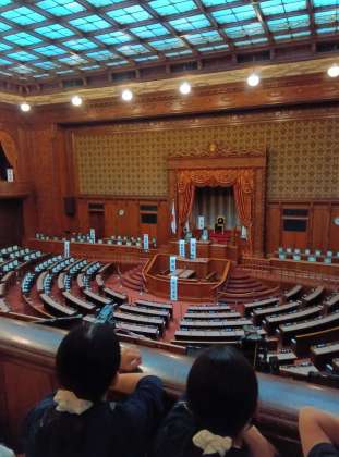 本会議場を見て、意外に小さく感じた子もいたようですが、レプリカでも見学用の建物でもなく、まぎれもなくこれがニュースなどに出てくる本会議場そのものです。そうなんですよ、結構小さく感じるんです。でも作りの豪華さには圧倒されていました。