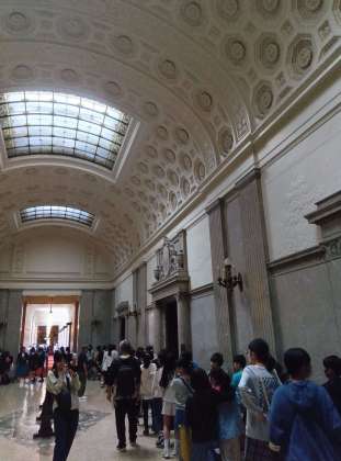天皇陛下の御休所はものすごく豪華な作りになっています。国会議事堂建設の1/6をかけたとかかけていないとか・・・。御休所前の広間も豪華です。こんなところに住み・・・たくはないですが(落ち着かなそう)、たまに休憩に来たい感じです(贅沢)。