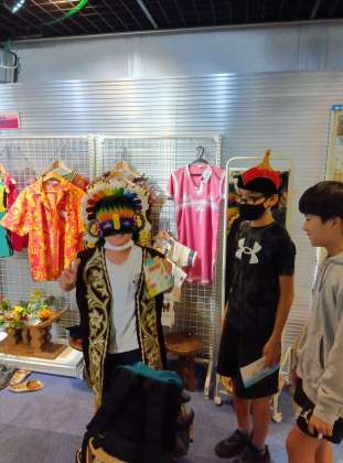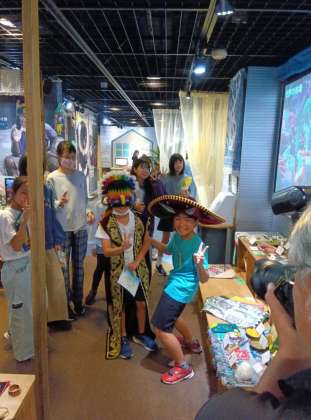 自由に着られる衣装がたくさんあり、急遽ワールドワイドファッションショーの始まりです。フレームもあっていい感じ♪