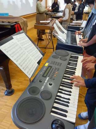 通して練習するのを聞けました。どうやら完成が近いようです。低い音の打楽器の重たい響きがかっこいいです。こうやって全員が何らかの楽器(リコーダー、鍵盤ハーモニカ以外の)をつかって合奏の経験をするのは、とても大きな経験だと思います。