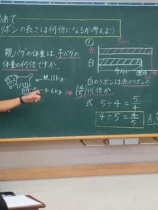 わり算すればいいことが分かっても、どちらをどちらで割るかしっかり考えなくてはいけません。〇倍が必ずしも2倍とか3倍などと1倍よりも大きくなるとは限りません。逆から見ると小さくなる(1倍以下)ということも出てくるわけです。