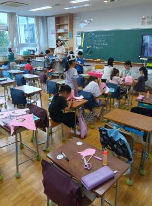 2年生が作業をしているのを見ると、何だか運動会で赤と緑の帽子を作っていた姿と重なります。あれもかわいらしかったですが、今回も期待できそうです。