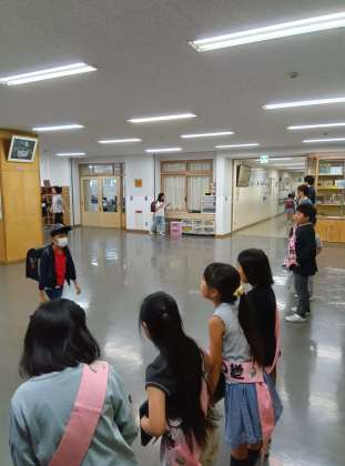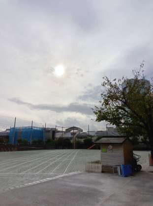 今日は午後に雨になる予報でしたが、登校時にもパラパラと降っていました。ぼんやりと日が出てきたなと思った8時10分過ぎ頃のことです。濡れるほどの雨ではなかったので、傘を持っている子は差したり、ほとんどの子はそのまま歩いてきたりと落ち着いて登校していました。