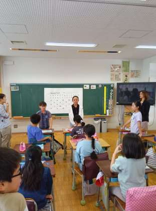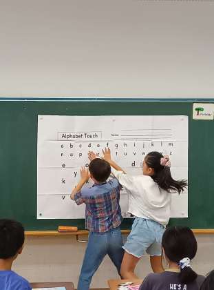 4年生の外国語活動では、アルファベットを使ったゲームをしていました。