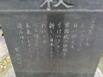 百周年に当り 卒業生 住民一同先人の偉業をたたえ 京西小学校の充実発展を祈念してこの碑を建てる