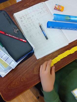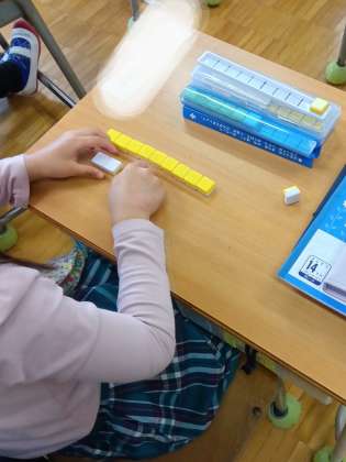 1年生が久しぶりにブロックを使って算数の計算について考えていました。