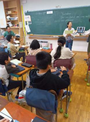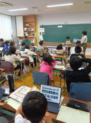 などが教科書の例で出ています。これだけでも広く使えて十分表現できますが、「こう言いたい」という表現があったら英語支援員の先生や担任の先生に聞いて表現を学びます。「伝えたい」「表現したい」という気持ちは大切です。ほかにも単語でこれは英語でなんて言うのかというのも教えてくれます。