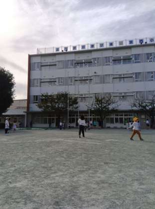 昼休み、東側は青空が見えますが、西側(校舎裏)に雲が多いです。校庭の影が伸びるのがずいぶん早くなってきました。太陽の高度が下がってきているんですね。5時間目の途中には、半分くらいが影に覆われます。