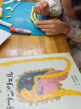 これから舞台や周りの道具、登場するキャラクターなどができてくると更に世界観が再現されていくことでしょう。もうすぐ各学年が作り上げてきた劇を発表する学芸会ですが、全員がまさに物語の舞台を作っているプロデューサーになったように小さな世界を作っていきます。