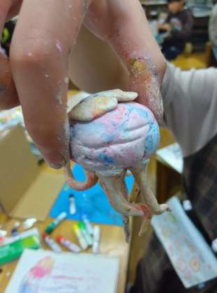 「物語の世界」を作っている4年生の図工の続きです。