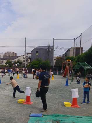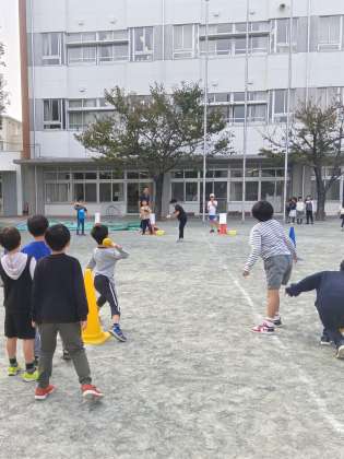 午前中出張だったため、本日は昼休みのみでしたが、たくさん来てくれました。みんなでキャッチボールを楽しみます。とはいってもグローブは3つなので、3か所作って、一方通行で投げられたボールをキャッチして、軽く返すか転がして返します。ボールも柔らか目のものを中心に3種類選べるようにしました。実施しながらやり方も工夫していきます。