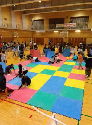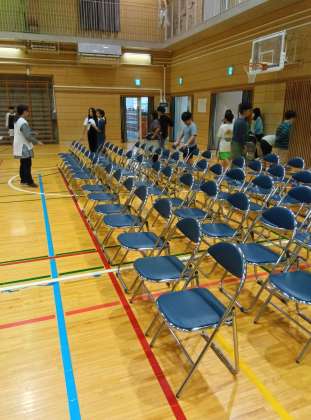 今日は6校時に6年生が体育館で会場準備の作業を行ってくれました。