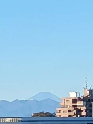 新聞に、「富士山が(うっすら)初冠雪」という記事が出ていたので、朝から4階へGO!息が切れます・・・が、見事に富士山が見えました。まだ冠雪している様子までは見えませんでしたが、冬は空気が澄んで富士山が見えやすくなってうれしいです。