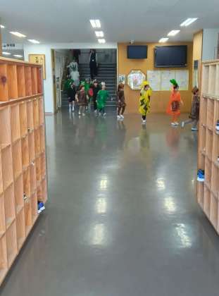 1年生は、衣装を着けてもう体育館へ。早めの登校、御協力ありがとうございます。移動の様子が見られました。3年生も準備を済ませて朝の会。普通に朝の会が進んでいるのが絶妙にシュールです・・・。