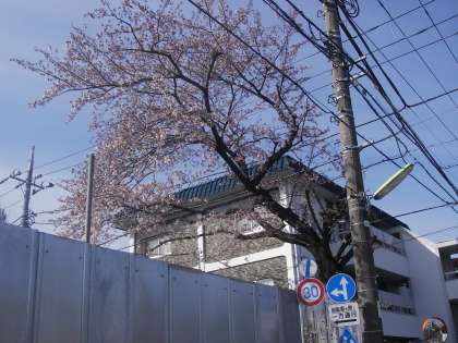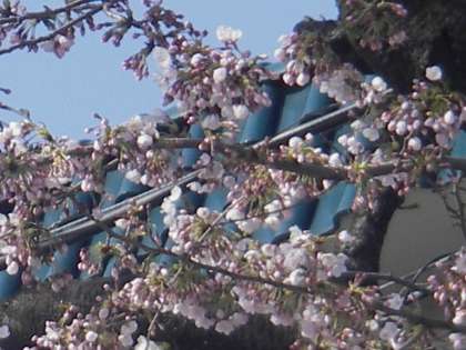 3日、京西小にわずかに残る桜が咲き始めました。まるで子どもたちを迎えるように花びらを開かせています。