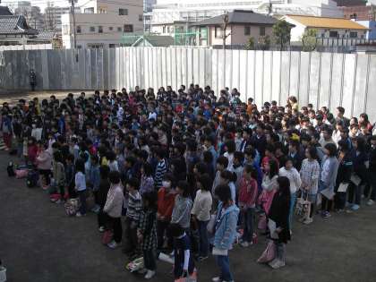 4月6日、始業式です。花に迎えられて21年度のスタートです。子どもたちは始業式の日は早々と登校します。どのクラスか、先生は誰なのか、不安と期待の気持ちでいっぱいなのだと思います。児童数は444名でスタートです。