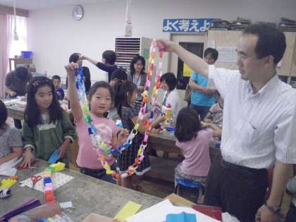 今日作った飾りは7月5日に飾りつけます。竹は高橋佳一さんが持ってきてくれます。1年生の各クラス用にも竹を持ってきてくださるそうです。