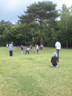 河口湖移動教室2日目は風穴から森のハイキングです。お昼ご飯は野鳥の森公園です。広場で思いきり遊べます。