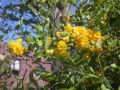 15日、子どもたちが通ってくる道筋にはもう初夏の花が咲いています。ハナミズキです。ヤマブキです。今日は半袖が似合う日となりそうです。