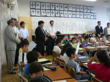 鳥取県で若井田教育長が教科日本語について講演をしました。その内容がとてもよかったということで実際に世田谷まで視察に来られました。校長室で教科「日本語」の概略、京西小学校の概略を説明した後、早速授業参観です。漢詩の授業です。子どもたちが元気に発表しています。議員の方々も納得して帰られました。(校長 箭内)