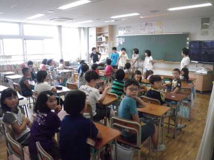 今日は朝、子ども会で集まる練習をしました。安全に下校するために子ども会で集まり集団下校をする時があります。出来るだけ速く顔見知りになり、短時間で集まれるようにしておきたいのです。今日は先生に支持されるのではなく子どもだけで集合しました。(校長 箭内)