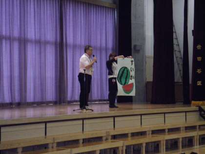 夏休みに向けて生活指導の河合先生から「すいか」のお話がありました。「す」はすすんで、です。「い」は命です。「か」は身体です。