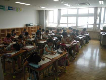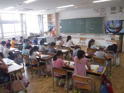 京西アカデミーのほかに各学年では先生が中心となり「ぐんぐんスクール」を行っています。今日は3年生が勉強しています。算数です。静かに真剣に取り組んでいます。森口先生がきっちりと指導していました。(校長 箭内)
