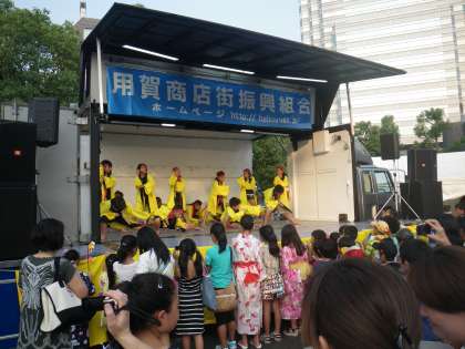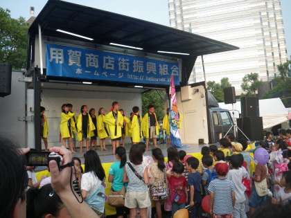 26日はサマーステージ2日目です。いよいよ京西小学校5年生の登場です。運動会で演じた京西ソーランを踊りました。ハッピは用賀商店街のハッピです。お借りしました。